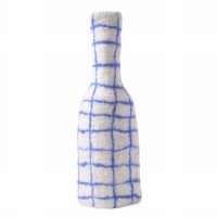 BOTTLE/VASE COVER, blue-checked